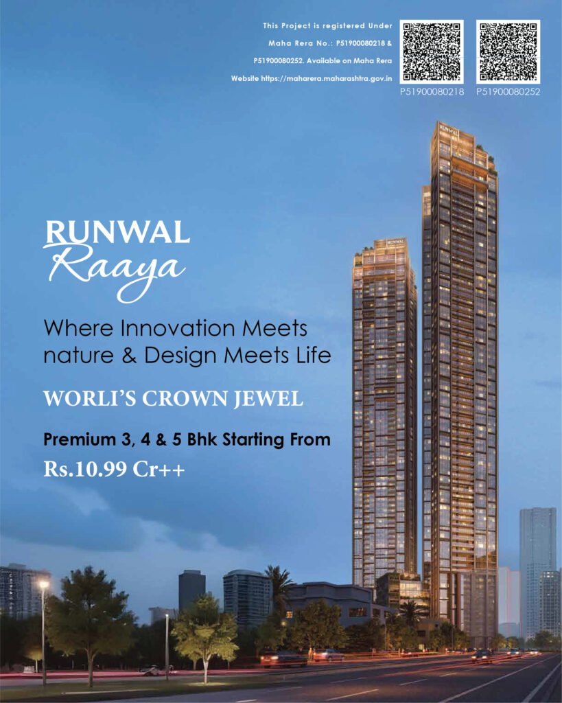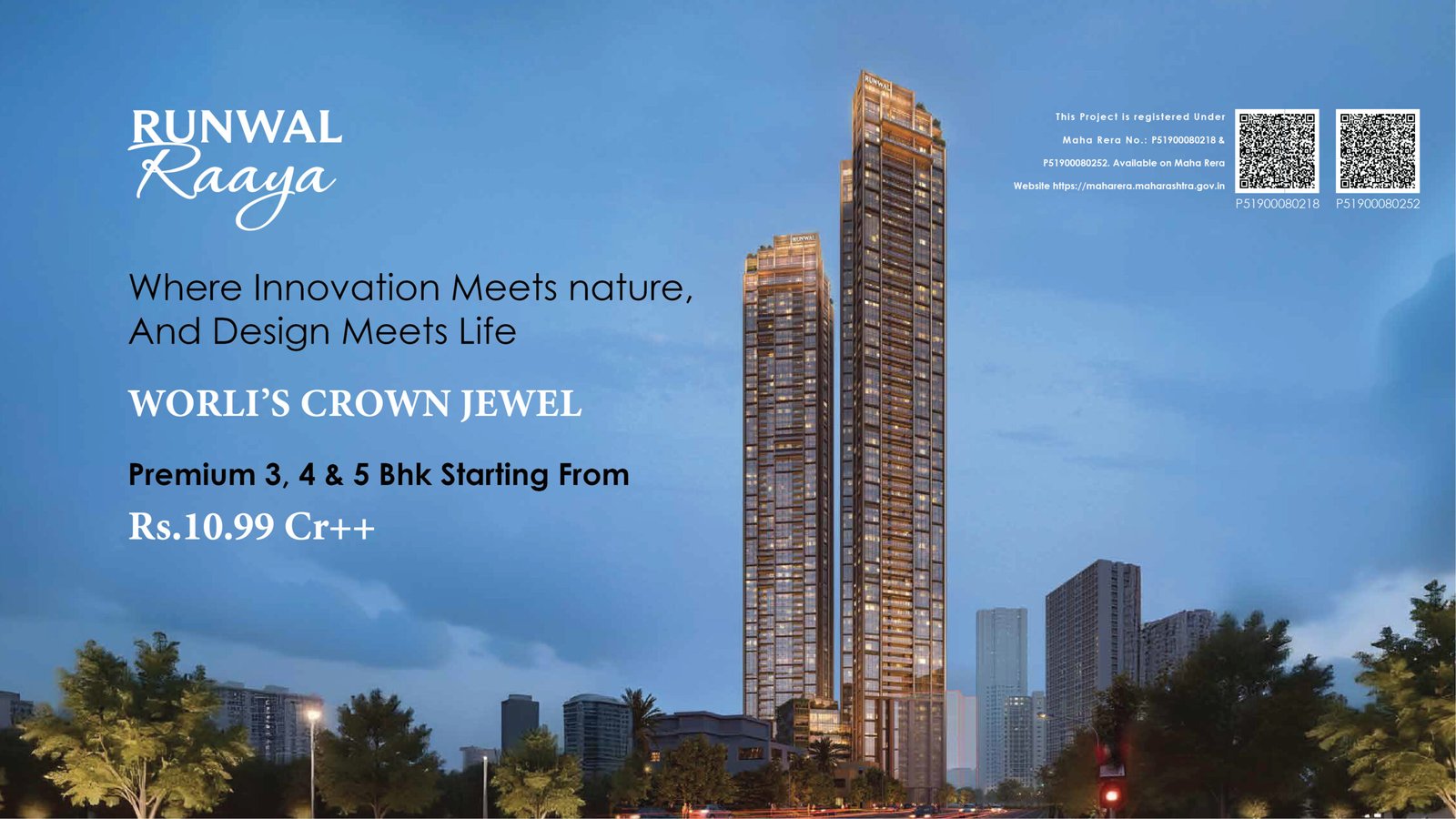 Set across 4 acres in the heart of Worli, Runwal Raaya is a rare sanctuary in the city home to just two iconic towers, rising with intention and distinction.